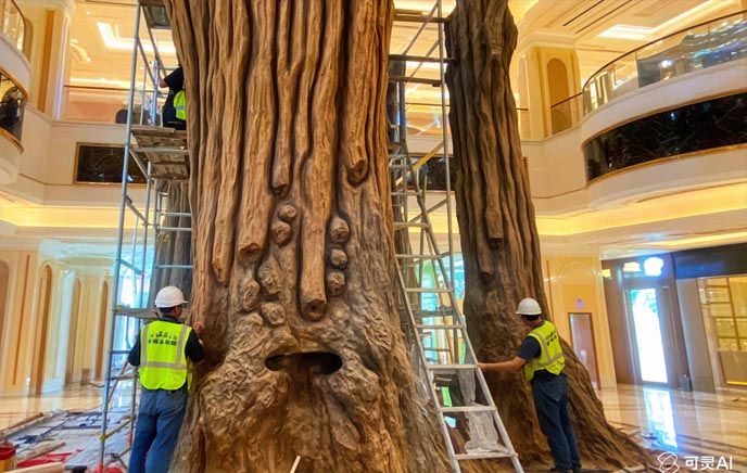 庭院中塑石假山实际案例 笔者在豪宅中的豪宅-财富公馆别墅区塑石假山施工...